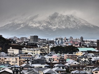 とし画伯の桜島 !(^^)! 昼は「浅黄」、夜は「ツンドラ」