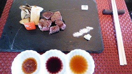 岡山全日空ホテル 厨「せん」の鉄板焼き。地ビール「独歩」、ワイン、日本酒。