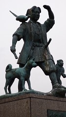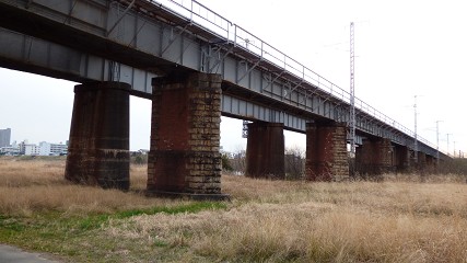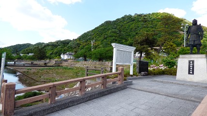 桃太郎たちに見送られて、川沿いサイクリング。岡山神社、岡山城、山陽本線。