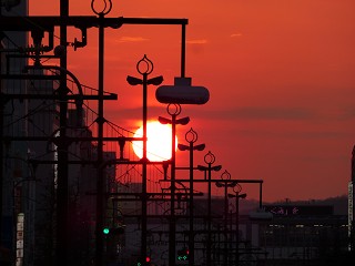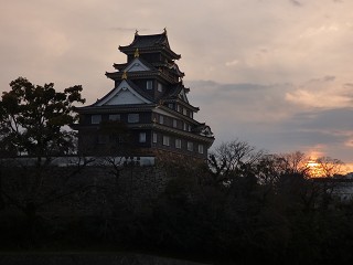 岡山城から岡山駅を眺めれば、沈み行く夕陽の絶景。