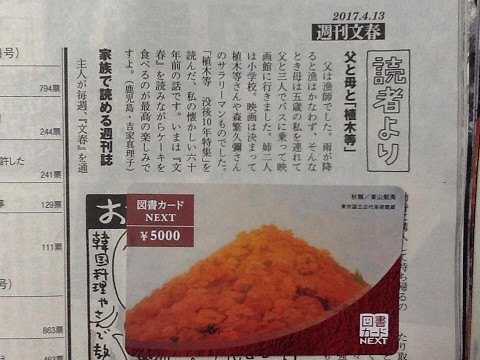 ■ 真理さんの投稿が『文春 読者より』に掲載 !!