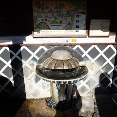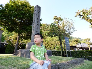 磯庭園異人館の薩摩切子を見ている間、としくんは落ち葉拾いと列車待ち。