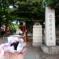 ホテルは花園稲荷神社の近く。花園万頭を買って、ぱくり。