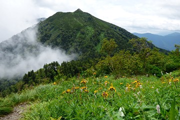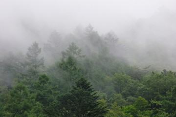 大山は雲の中です。