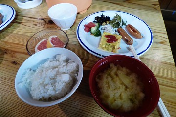 別荘で、おにぎり、豚汁、カレーパンなどごちそうになりました。