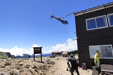 途中、救難ヘリの飛来。山頂は暴風状態 !!。