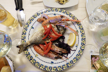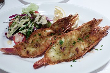 久しぶりの「マンジャーモ」で、えび、子羊をいただきました。