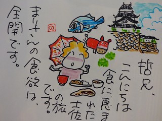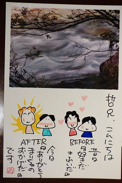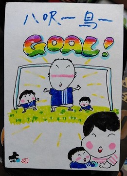 哲兄にはがき。日本が予選突破 !! けんけんに出しました。