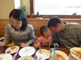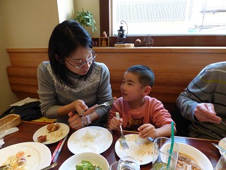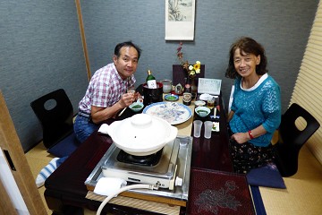 まみちゃんが仕事で日本に帰ってきました。ケルンさんと城山「滝の茶屋」で和食。