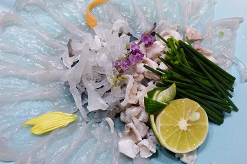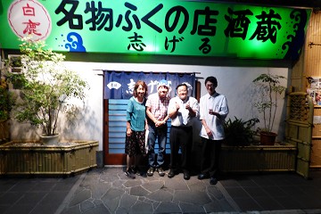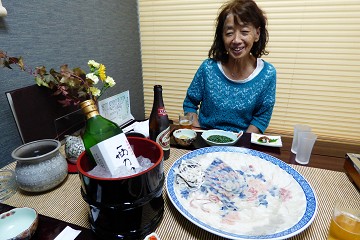 では、下関に移動。「養老の瀧」で小ふく刺し。