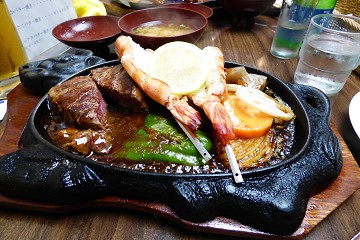 偶然発見した「かもめ屋」は海老とステーキ専門店。美味 !!